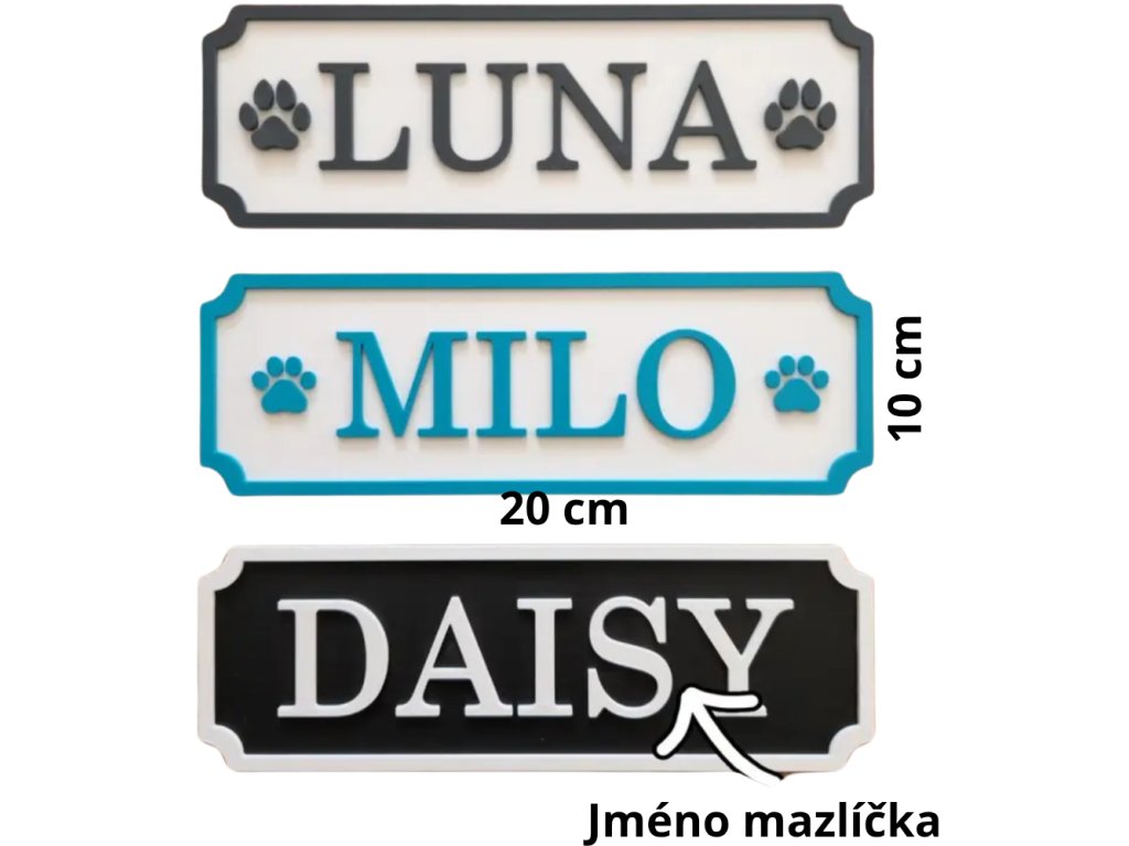➡️ Personalizace na míru – gravírované jméno vašeho mazlíčka (např. Daisy, Luna, Max).