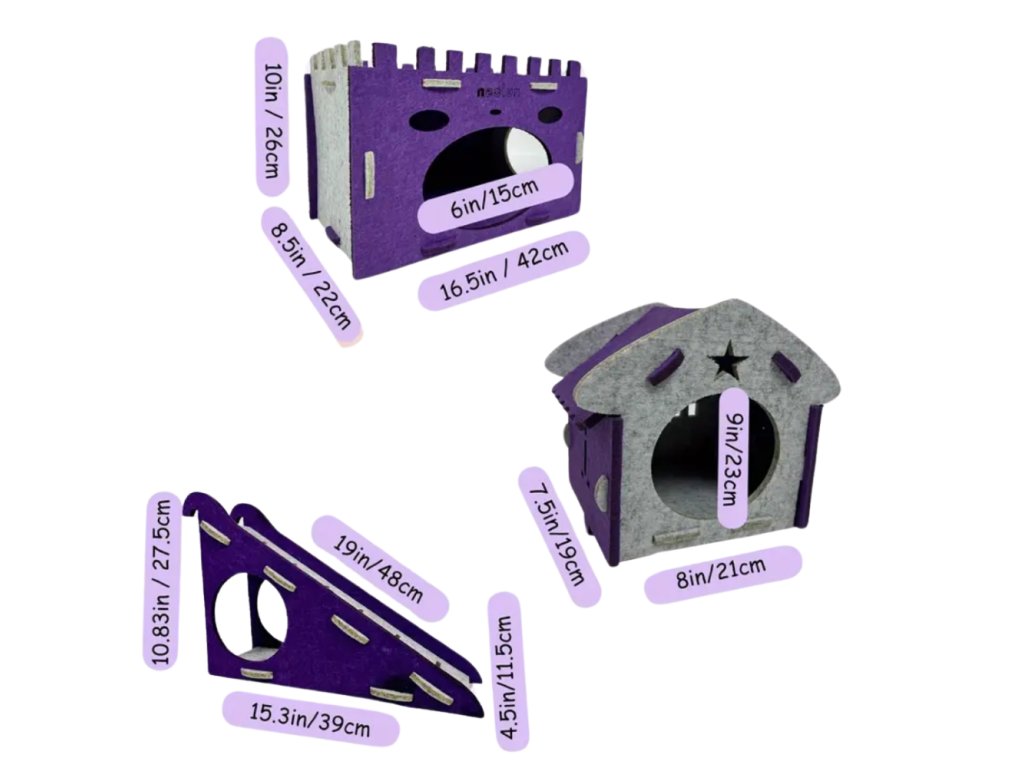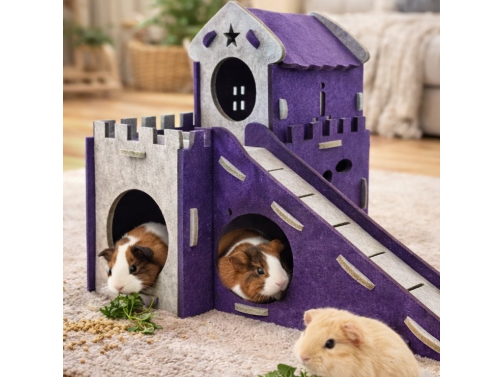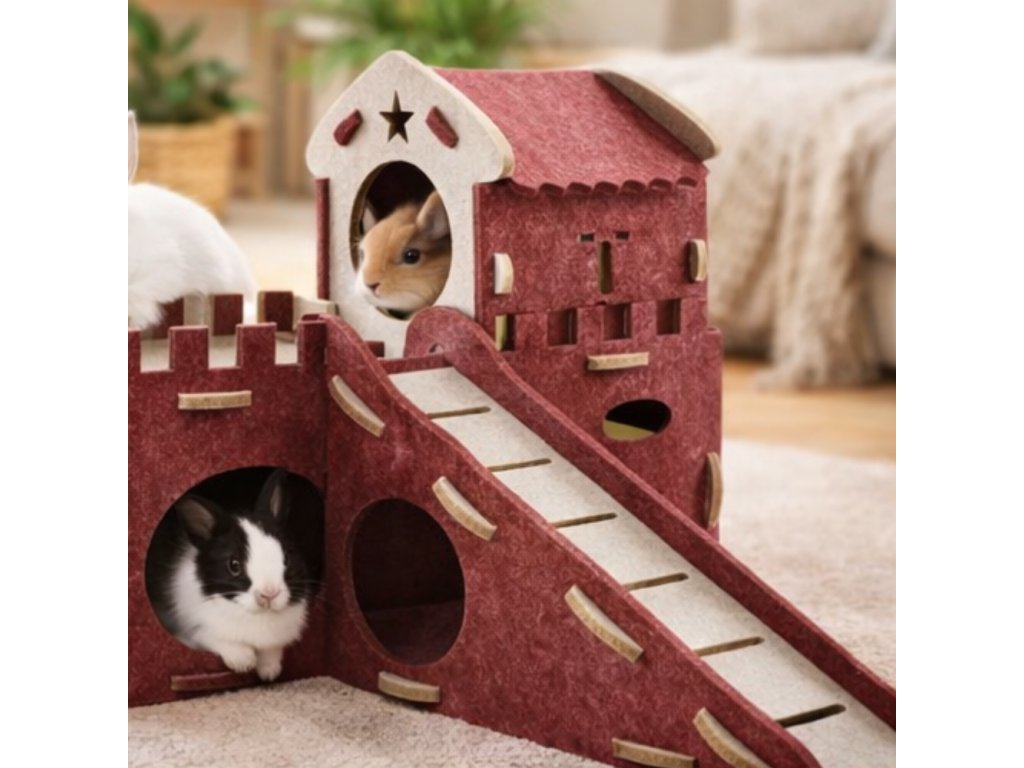 ➡️ Víceúrovňové útočiště – 2 patra s rampou pro lezení, hraní a odpočinek.