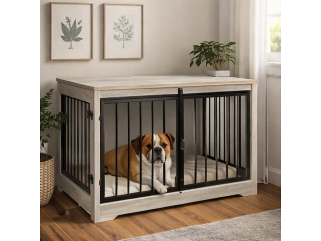 Stylová klec 2v1 – bezpečná skříňka a pelíšek v jednom. Elegantní řešení pro psy i kočky, dostupná v několika barvách.  Produkt lze označit jmenovkou.